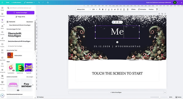 Entdecke über 1800+ Designs und finde dein persönliches Highlight für deine Buchung. Ob Farben, Namen, Logos oder eine persönliche Widmung – du bestimmst den Look und wir setzen ihn perfekt in Szene. Jedes Template ist im Hoch- und Querformat erhältlich und kommt mit einem passendem Startbildschirm, der deine Gäste direkt begeistern wird.