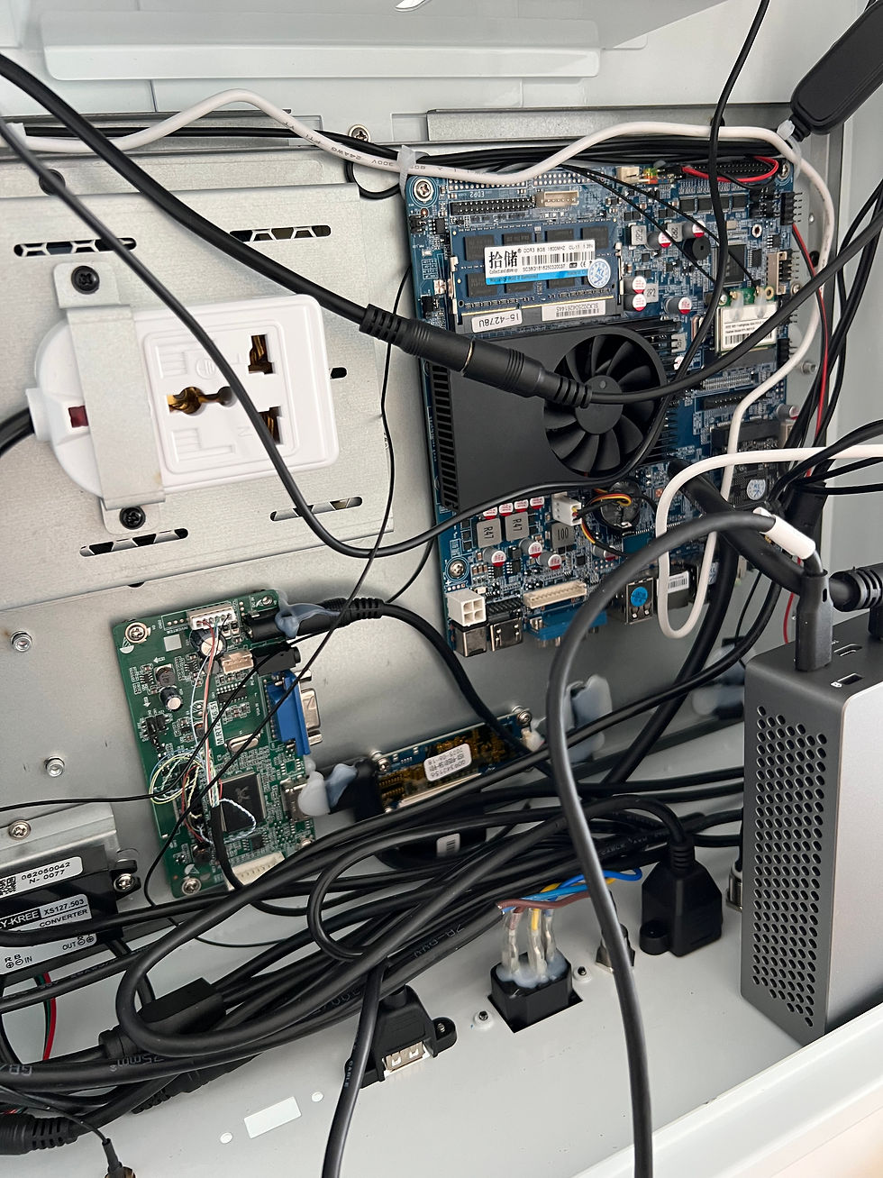 Im Inneren der SnapBox arbeitet ein leistungsstarker Mini-PC mit Intel i7 Prozessor, 32 GB RAM und 1 TB Speicher. Dieser Computer steuert die gesamte Fotobox: